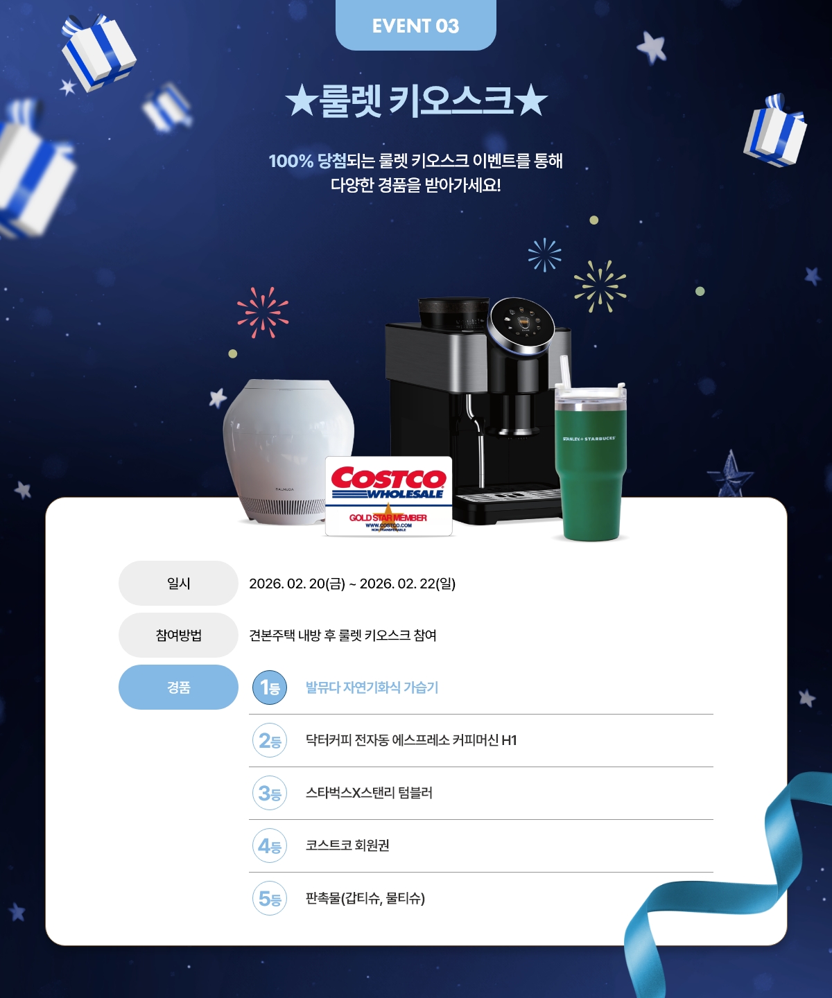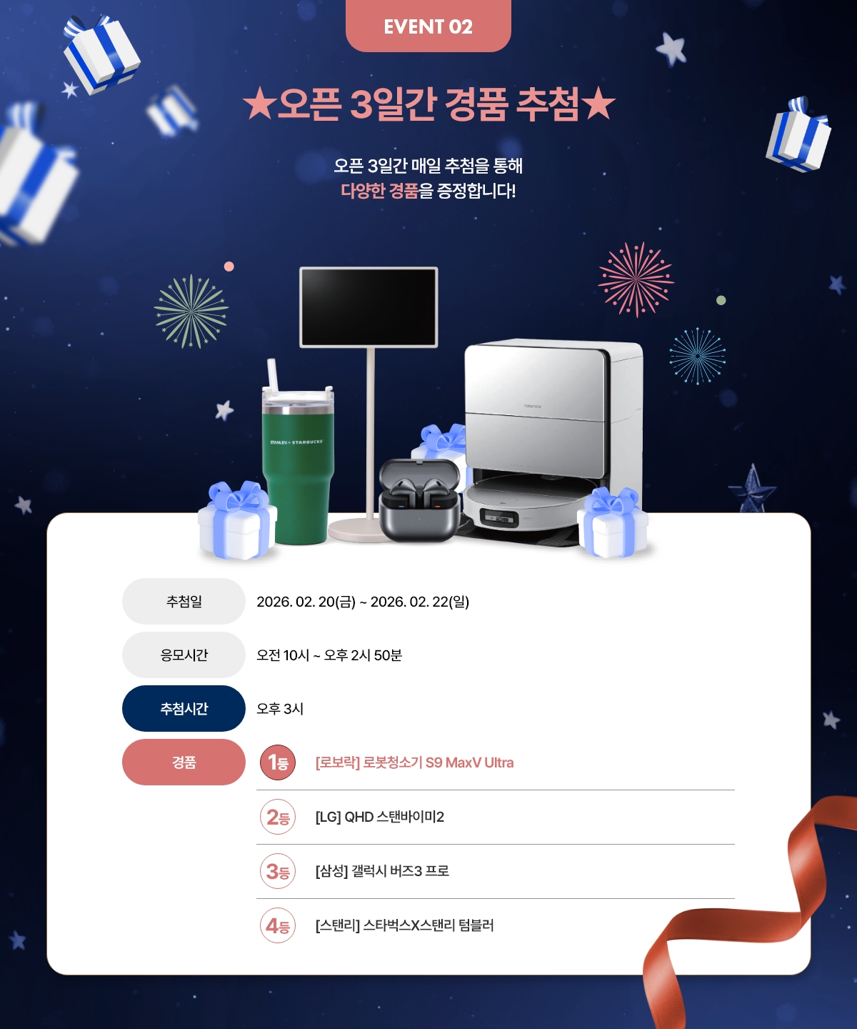 - 추첨 시 현장에 참여하신 고객에 한해 당첨자를 선정합니다.