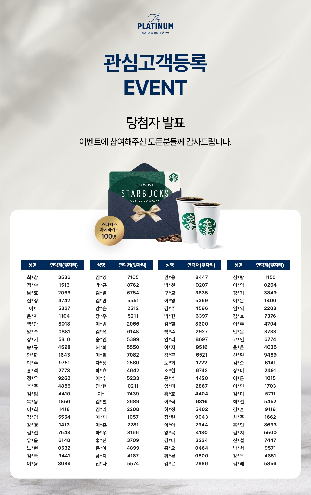 - 관심고객등록 이벤트 당첨자